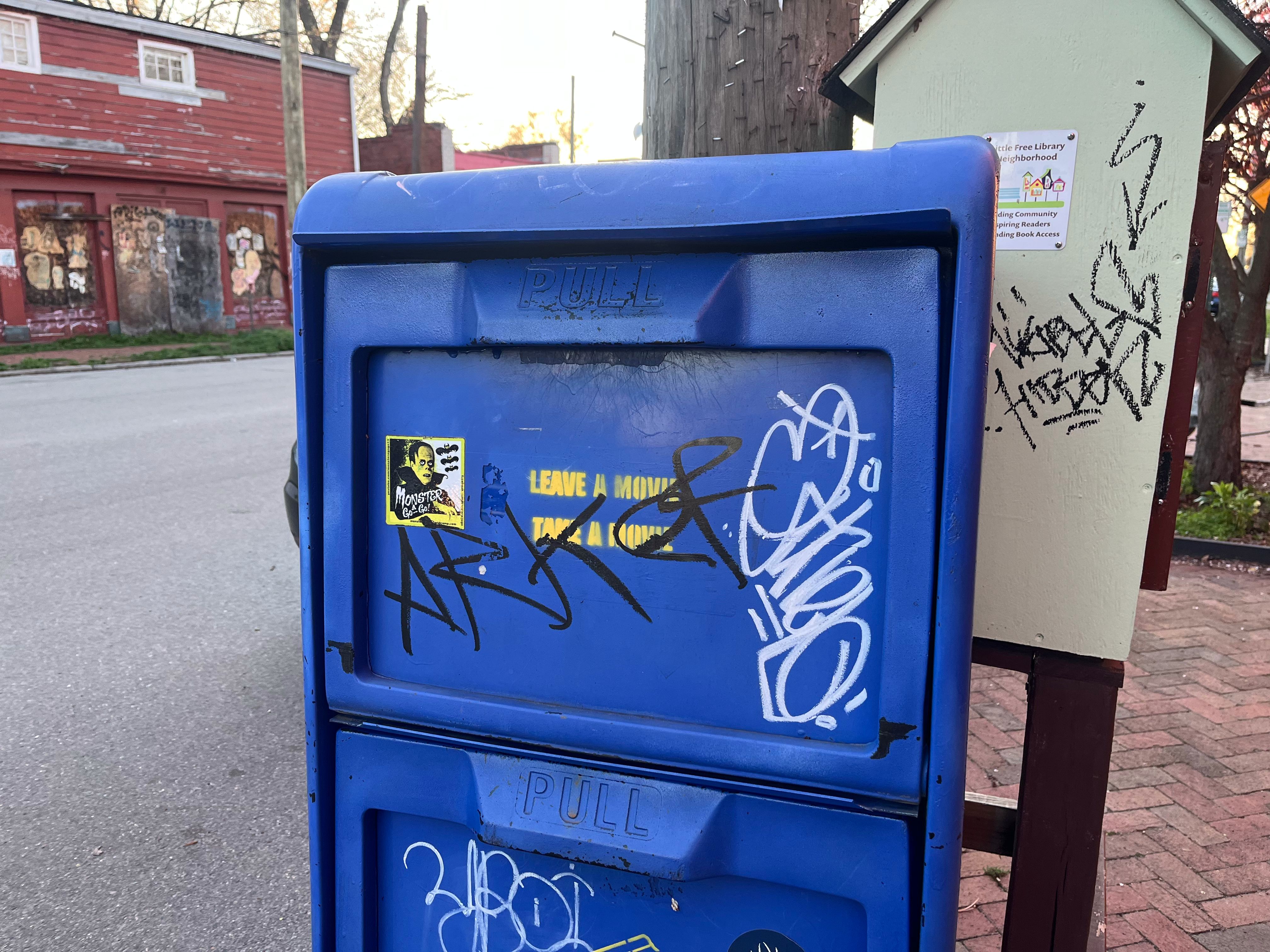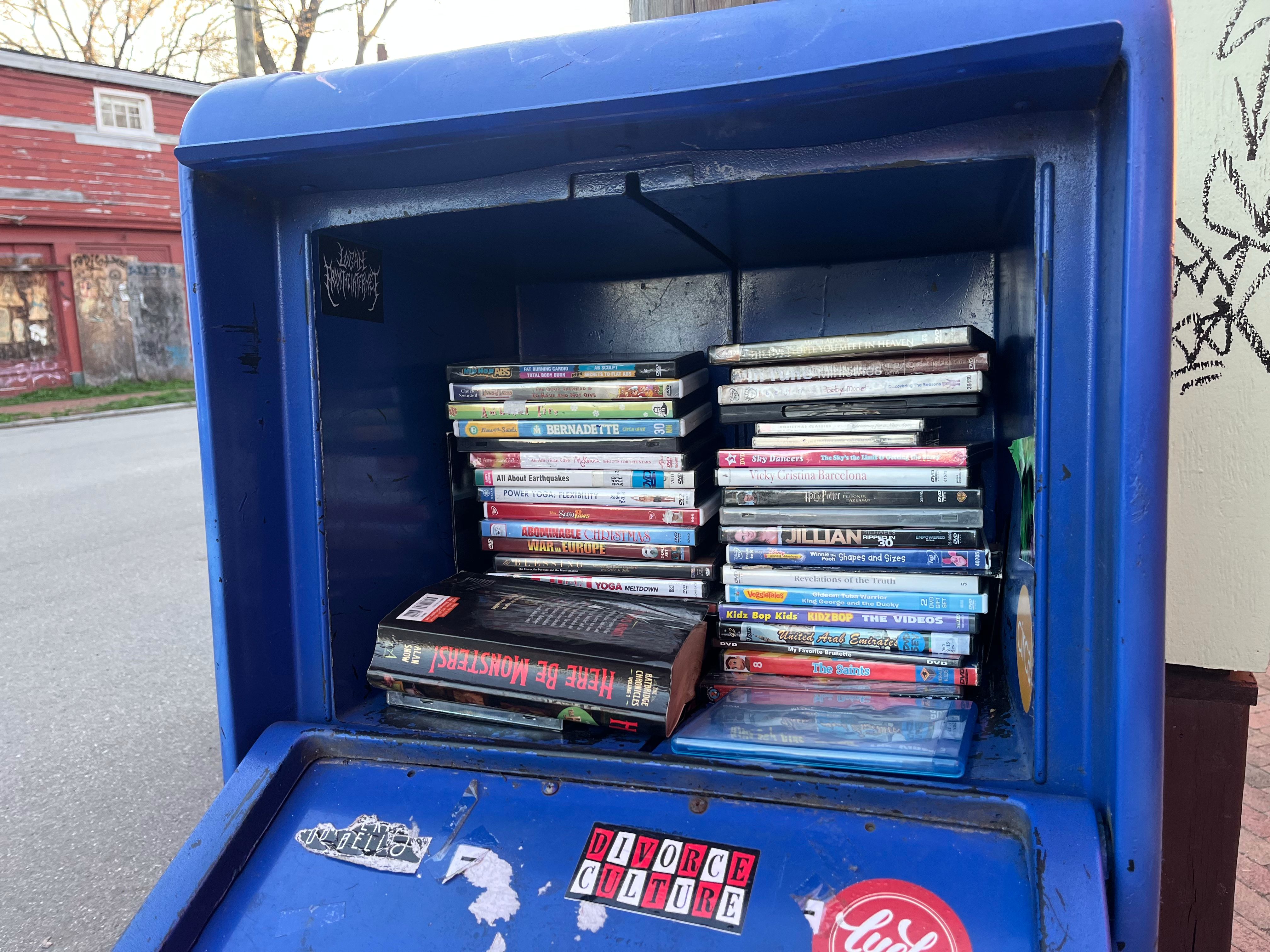 Perhaps you’ve noticed the blue filing cabinet-esque container standing on E. Marshall St. between Jade Multicultural Salon and Chimbo Sandwich Shop. “LEAVE A MOVIE / TAKE A MOVIE” it reads in yellow block caps. The color scheme is instantly familiar to anyone born before, say, 2007, when the launch of a company called Netflix marked the beginning of the end for the brick-and-mortar movie-rental giant Blockbuster. (“Only Nineties kids will remember,” et cetera.) Much like the last remaining Blockbuster in Bend, Oregon, this self-serve version in Church Hill operates independently of the collapsed chain.