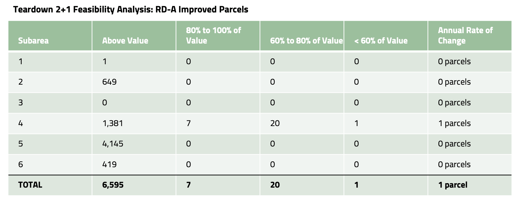 How much more uptake if 2+1 is allowed with teardowns? The teardown scenario represents maximum development potential under the proposed zoning—developers can demolish existing structures and build two new principal dwellings plus an ADU. No preservation requirement and the only geometric constraint is whether the lot is big enough.