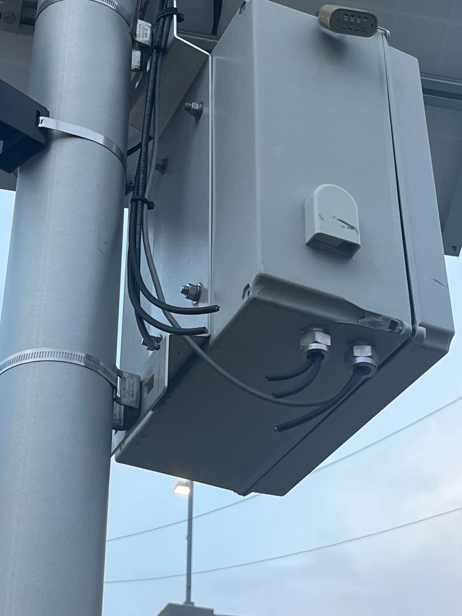 In the course of my reporting for The Richmonder, I tried and failed to locate a city contract that pertained to Leonardo, ELSAG, or any of its affiliated procurement vendors in Richmond’s (sometimes-finicky) Open Data Portal. I also swung by to photograph the units again earlier this month. When I did, I noticed that one of the devices’ cables had been cleanly clipped at several points; that camera, unlike the others at the intersection, did not display a red scanner light, suggesting it’s no longer functioning.