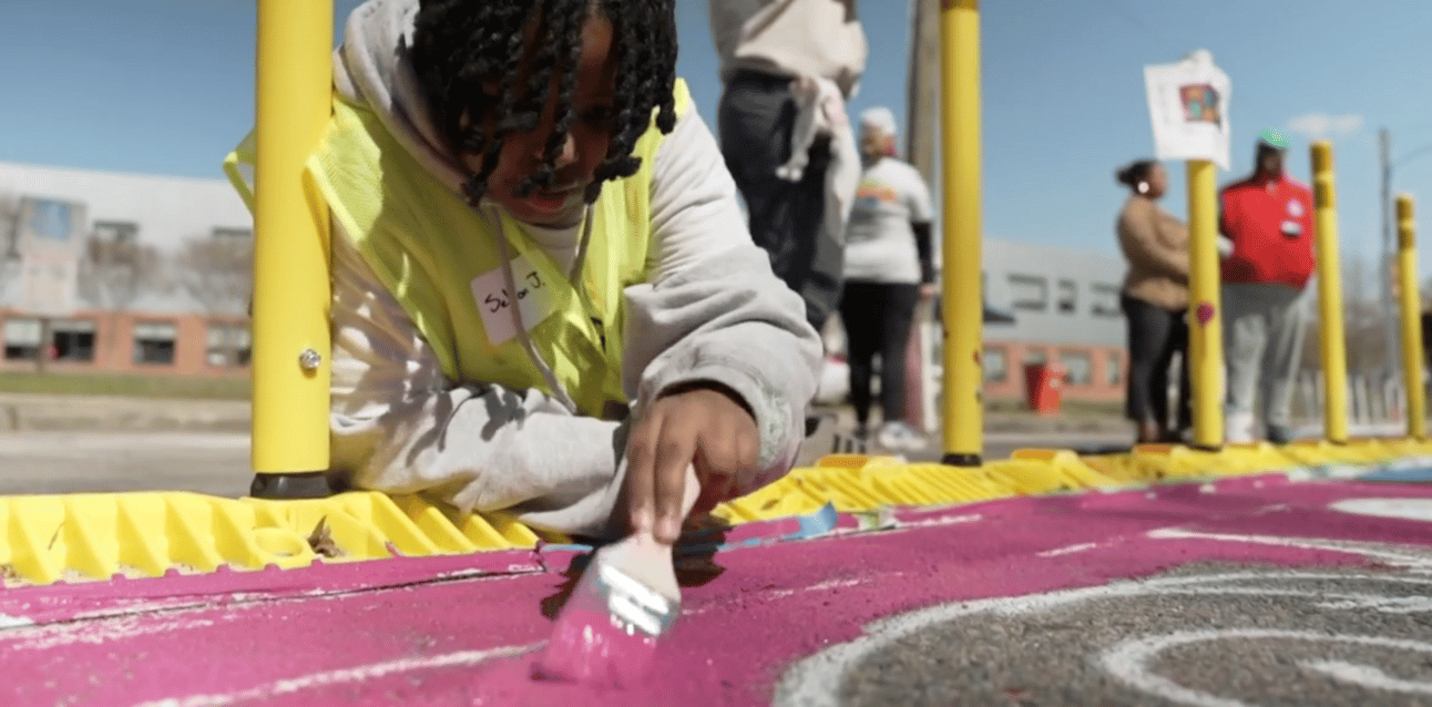 As the first phase of Richmond Connects’ longer-range street-safety strategy, that’s a good trade. But it also reinforces just how overmatched these comparatively flimsy fast-action installations are by the scope of the problem. For example, earlier this week WTVR did a segment on Martin Luther King, Jr. Middle School students painting a mural on Mosby St. The idea is that, along with bright yellow plastic flexposts in the median, the colorful asphalt could help to remind careless drivers that they’re in a school zone. “There’s a lot of traffic in this area, and there have been a lot of issues with kids safely crossing," an artist working with DPW, Sam “Skrimpz” Prather, told the newscast. "So making this mural is to help slow traffic, creating a visual aid.”