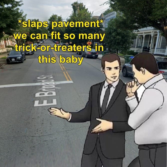 As I mentioned last week, the Church Hill Association (CHA) was gracious enough to carve out some time in its next meeting to discuss plans to shut down E. Broad St. for Halloween 2026. That confab commences at 7pm on Tuesday, November 18th; mark your calendars.